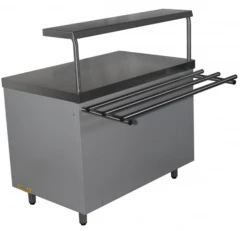 Линия ШКОЛЬНИК спроектирована специально для организаций бюджетной сферы, в частности – учебных заведений. Функционально линия отвечает всем современным требованиям организации общественного питания. Столешницы, полки и направляющие изготовлены из нержавеющей стали AISI 304. Передние и боковые панели из оцинкованной стали, окрашенной серой эпоксиполиэфирной краской. Линия включает все необходимые для рабочей расстановки элементы: прилавки-витрины охлаждаемые (закрытый и открытый), прилавки нейтральные, прилавок для столовых приборов и подносов, кассовая кабина и мармиты (первых, вторых блюд и универсальный). Элементы линии доступны в двух вариантах длины: 1120 и 1500 мм.