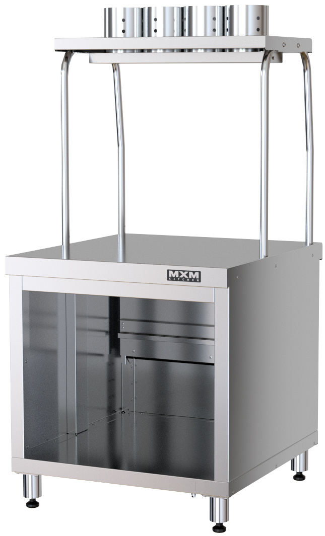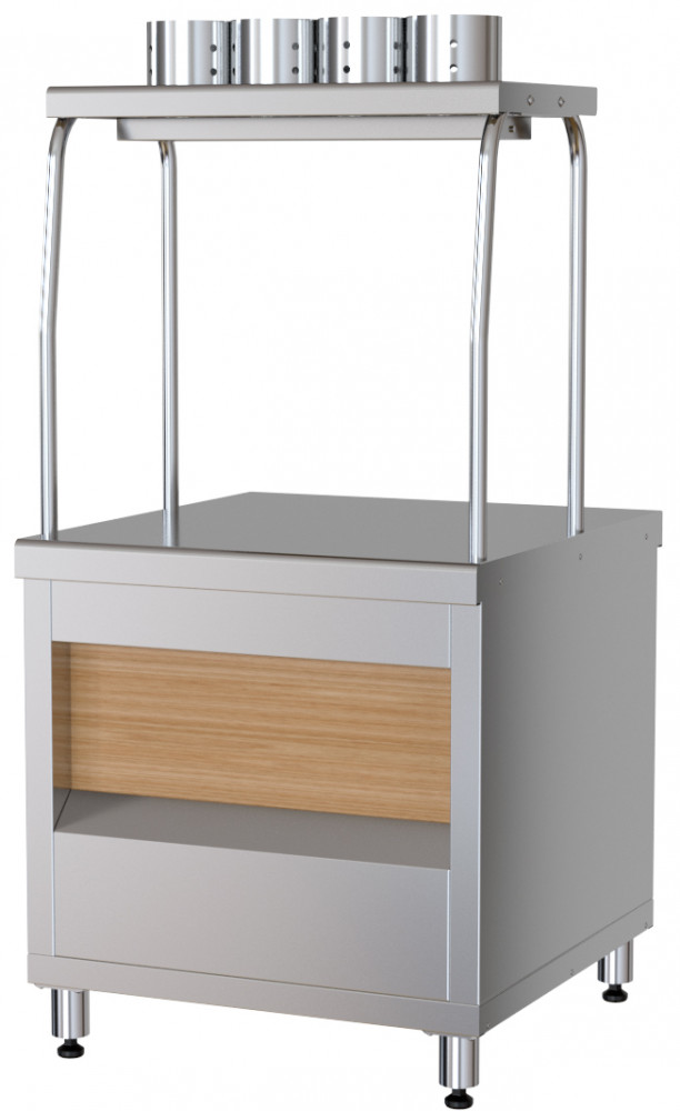 Прилавок для столовых приборов Марихолодмаш ППС6 из линии раздачи питания "ШЕФ" 1120 из нержавеющей стали. Изделие относится к разряду профессионального кухонного оборудования и предназначено для хранения и раздачи потребителю столовых приборов (ложек, вилок, ножей) и подносов самостоятельно или в составе технологических линий раздачи.