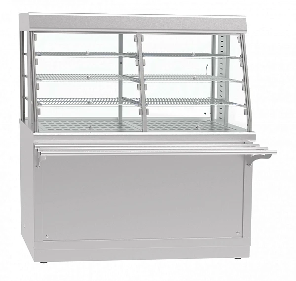 Прилавок-витрина тепловой Abat ПВТ-70Х-01 предназначен для кратковременного хранения в теплом состоянии мелкоштучных хлебобулочных и кондитерских изделий, продуктов питания на тарелках, в функциональных емкостях, на подносах и для их раздачи потребителю.