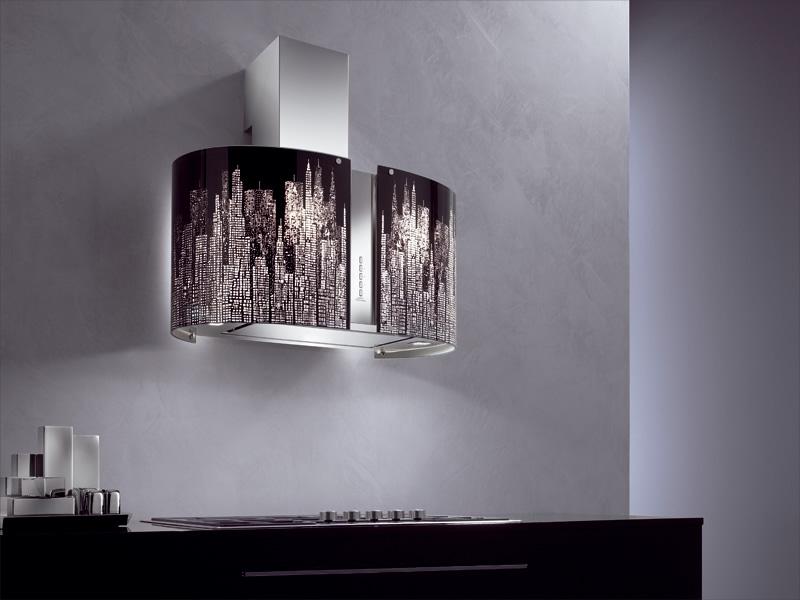 Вытяжка выполнена из высокосортной нержавеющей стали AISI 304 и декорирована стеклянным колпаком Manhattan.