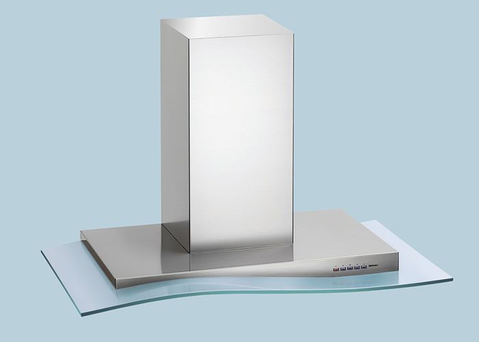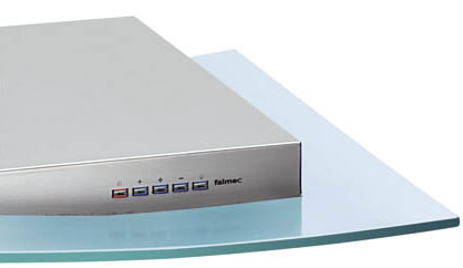 Вытяжка декорирована пластиной из прозрачного закаленного стекла