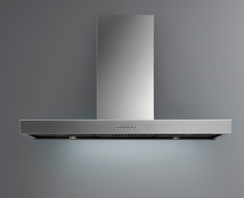Вытяжка из нержавеющей стали. Полированная фактура поверхности Scotch Brite защищает ее от грязи и царапин, что значительно сокращает время уборки.