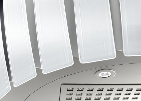 Светодиодная полоса, обеспечивающая декоративную подсветку купола, подарит вечером мягкий рассеянный свет, или позволит не включать основной его источник ночью. Лампы, расположенные на нижней панели, равномерно освещают рабочую поверхность под оборудованием.