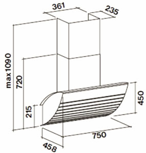 Пристенная вытяжка FALMEC SHARK 750 мм со стеклом серии Design выполнена в стали AISI 304, что является несомненным преимуществом, так как это единственная по-настоящему нержавеющая сталь.
