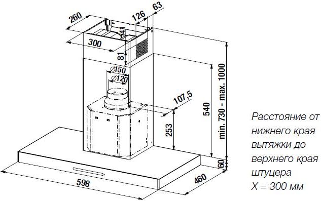 Производительность (при работе на отвод воздуха) согласно директиве 2010/30/EU: мин. 280 / 50 м3/ч / дБ; макс. 600/65 м3/ч / дБ; в интенсивном режиме 750/69 м3/ч / дБ;
