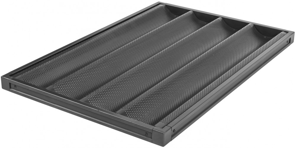 Противень для багетов с тефлоновым покрытием Danler GS14101 предназначен для выпечки хлеба и хлебобулочных изделий в подовых и ротационных печах на предприятиях общественного питания и торговли.