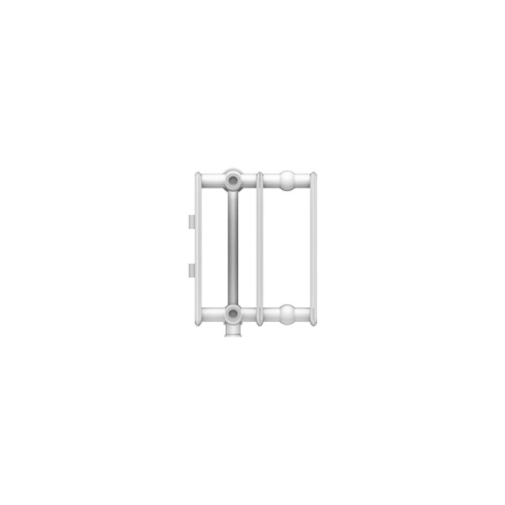 Шесть отверстий. Два отверстия внизу радиатора служат для входа и выхода теплоносителя, одно из боковых отверстий оборудовано клапаном Danfoss RA-N 013G1382 для регулирования температуры, на другое устанавливается клапан для отвода воздуха. Резервные отверстия закрывают заглушками.