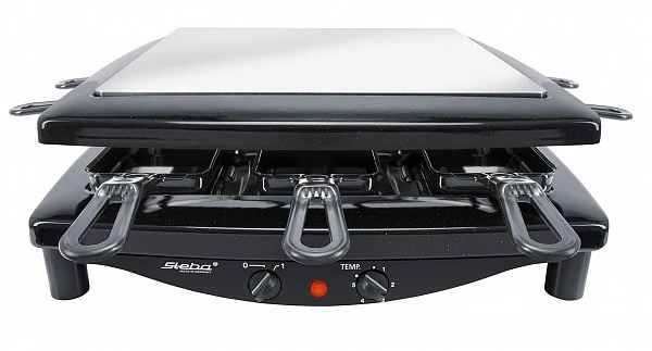 Раклетница Steba RC 7 Black Steel предназначен для жарки мяса, рыбы и овощей с одновременным плавлением сыра в частных домах, квартирах, отелях и офисах. Модель оснащена панелью управления с поворотными регуляторами, светодиодным индикатором работы и съемными пластинами для гриля.