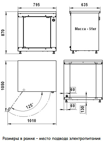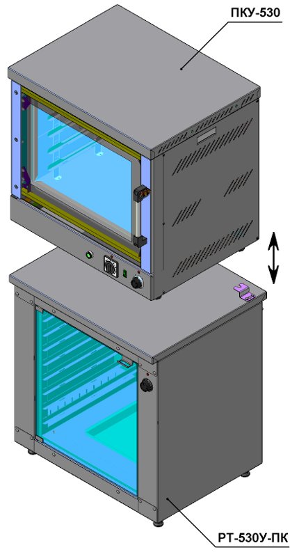 Шкаф предназначены для эксплуатации в комплекте с конвекционной печью ПКУ-530 (печь устанавливается сверху на шкаф), но может быть использован и как отдельно стоящее технологическое оборудование.