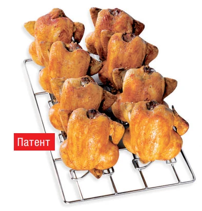 Вертикальное расположение птицы и связанный с этим эффект камина значительно сокращает время приготовления.