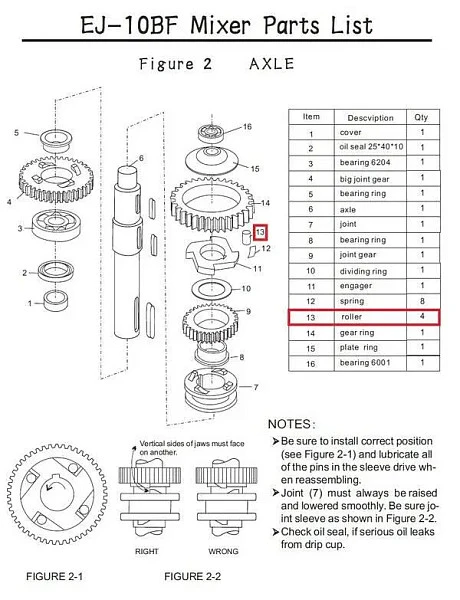 Ролик F2-13 для миксера планетарного серии Eksi серии EJ, модель EJ-10BF является комплектующей частью планетарного миксера EKSI EJ-10BF