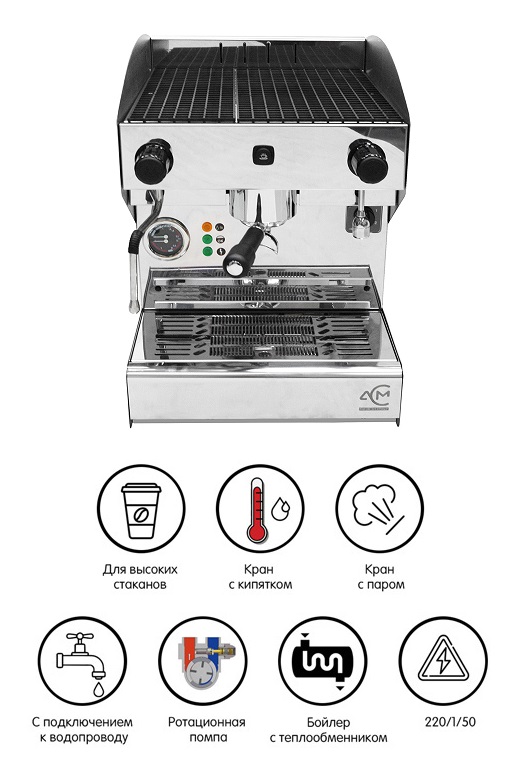 Рожковая кофемашина Acm Rounder 1 GR INOX (ACMRD001SIX)+high cup полуавтоматическая предназначена для приготовления кофе эспрессо и капучино. Рекомендуется для профессионального применения на предприятиях общественного питания, в кафе и ресторанах или в специализированных кофейнях.