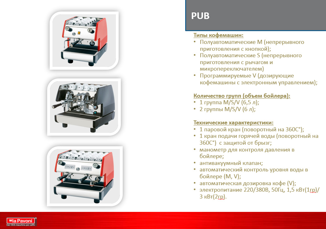 Автоматическая кофемашина La Pavoni PUB1VN дозирующая с электронным управлением используется на предприятиях общественного питания, в офисах и частных домах для приготовления кофе эспрессо и капучино.