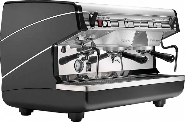 Рожковая кофемашина Nuova Simonelli Appia II 2 Gr S низкие группы с 2 термокомпенсированными группами используется на предприятиях общественного питания для приготовления кофе эспрессо и капучино (вручную). Модель оснащена 2 паровыми кранами из нержавеющей стали с системой PUSH&PULL и краном для подачи горячей воды. Аппарат осуществляет ручную дозацию и остановку подачи кофе, кипятка и пара.