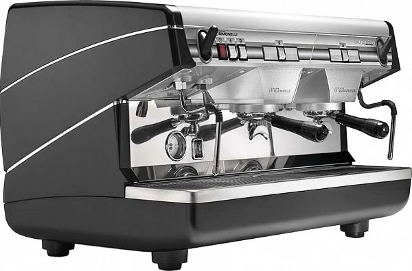 Рожковая кофемашина Nuova Simonelli Appia II 2 Gr S высокие группы (140640) с 2 термокомпенсированными группами используется на предприятиях общественного питания для приготовления кофе эспрессо и капучино (вручную). Модель оснащена 2 паровыми кранами из нержавеющей стали с системой PUSH&PULL и краном для подачи горячей воды. Аппарат осуществляет ручную дозацию и остановку подачи кофе, кипятка и пара.