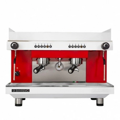Рожковая кофемашина Sanremo Zoe Competition SED Tall 2GR бело-красная используется в кафе, ресторанах, кофейнях и барах для приготовления различных напитков на основе кофе.