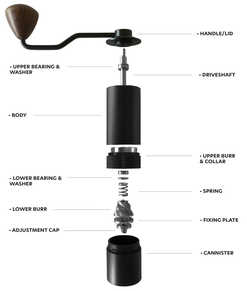 Ручная кофемолка Varia Hand Grinder создана для энтузиастов и знатоков кофейных напитков, представляет собой высокопроизводительную кофемолку с усовершенствованной конструкцией жерновов, легким алюминиевым корпусом и очень плавным приводом.