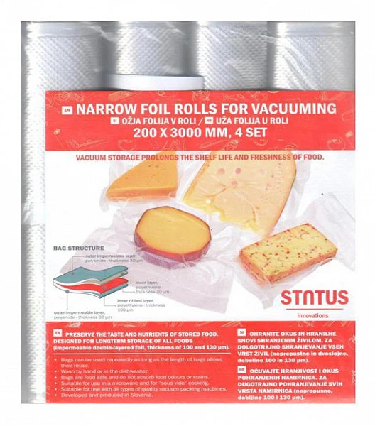 Вакуумные пакеты и рулоны STATUS производятся в Словении. Все используемые материалы европейского производства со всеми необходимыми сертификатами. Наши пакеты и рулоны для вакууматоров безопасны для продуктов питания и не передают продуктам посторонний вкус и запах. Для вас это означает, что вы можете использовать их для хранения всех видов продуктов, не задумываясь, и ваша еда сохранит свой естественный вкус и аромат. Наши вакуумные пакеты также подходят для заморозки и приготовления пищи.