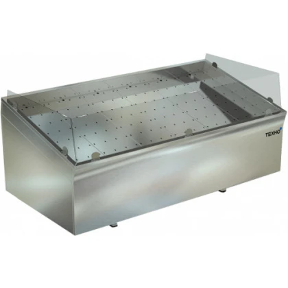 Модель, состоящая из ванны для льда и подставки, оснащена компрессором АСС (Италия), охлаждаемой столешницей, обвязкой с 4-х сторон, фартуком с 3-х сторон из нержавеющей стали AISI 430, стеклами с 3-х сторон, 2 сливными трубками диаметром 20мм, регулируемыми по высоте ножками, что позволяет компенсировать неровности пола. Внутри ванны расположен перфорированный поддон из нержавеющей стали марки AISI 430 толщиной 0,8мм для аккумулирования холода. Сварной каркас выполнен из трубы 40х40мм из нержавеющей стали AISI 304, ванна - из нержавеющей стали AISI 304 1мм. Температурный режим: -1/+3С.