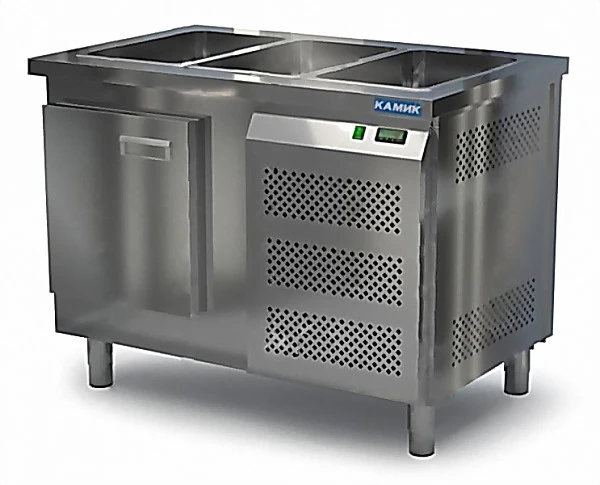 Салат-бар охлаждаемый Камик СОН-111010 предназначен для кратковременного хранения ингредиентов для приготовления салатов на предприятиях пищевой промышленности, общественного питания и торговли.