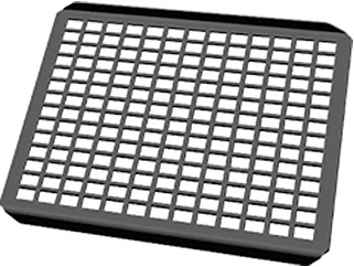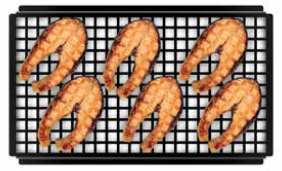 Ребристая поверхность с приподнятыми краями обеспечивает передачу тепла непосредственно в продукт без предварительного разогрева решетки. Не имея необходимости предварительно разогревать решетку для гриля, повар может выложить заготовки пищи на холодные решетки и загружать их в печь по мере необходимости.