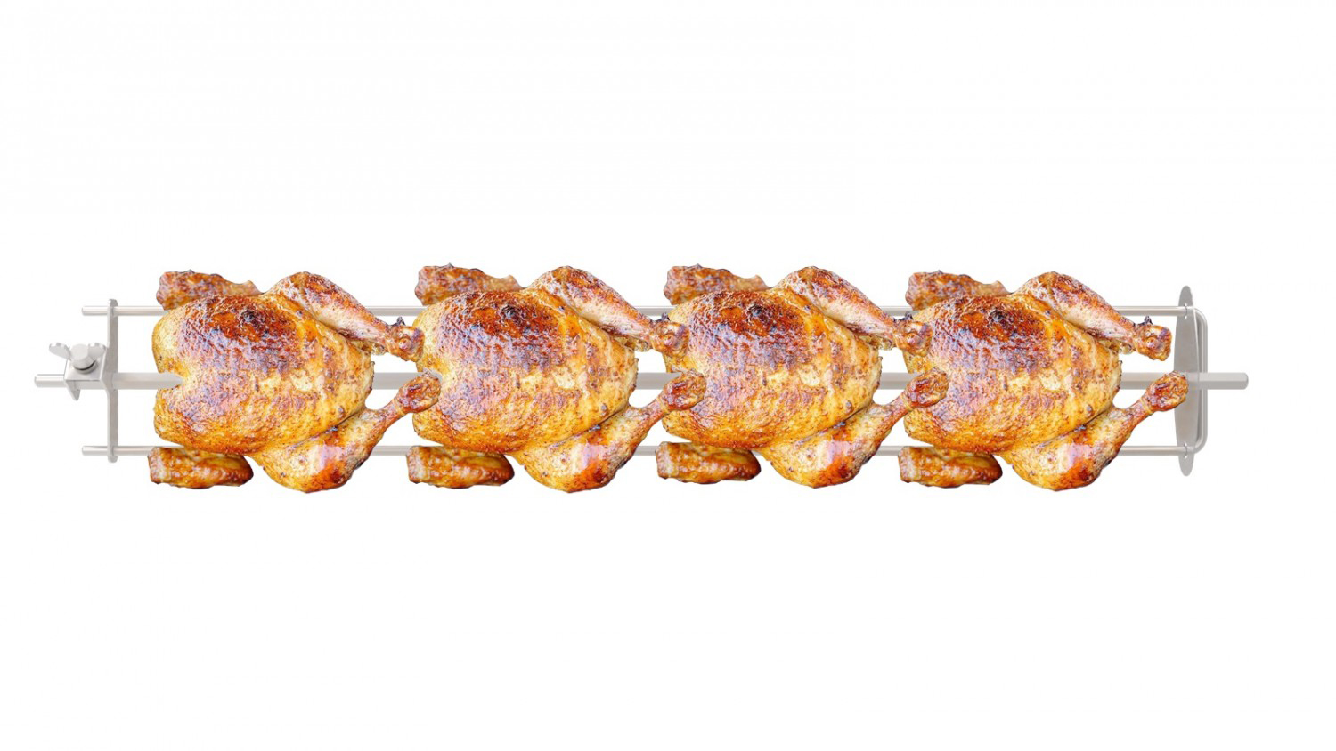 Шампур имеет три спицы и оснащен торцевыми фиксаторами кур, исключающими проворачивание кур во время приготовления