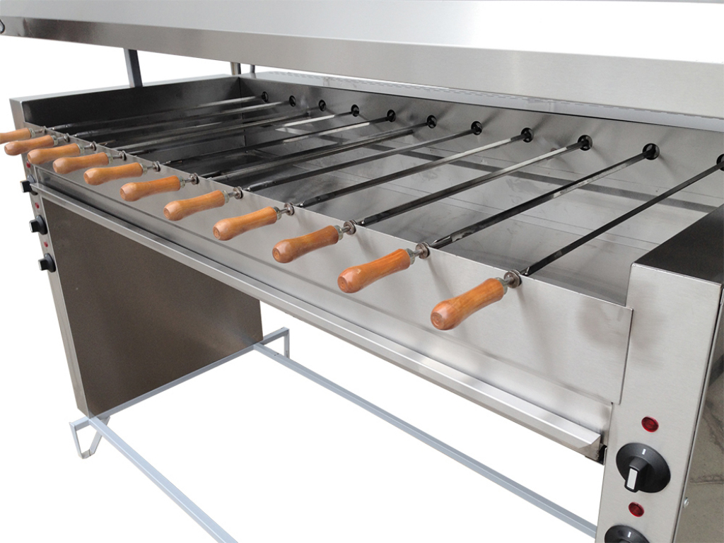Эксплуатация: кусочки мяса нанизываются на шампуры, которые устанавливаются на специальные подставки.