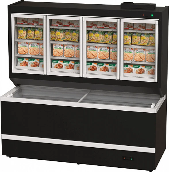 Шкаф-бонета Kifato Чикаго 2500 (выносной агрегат) применяется в сфере общепита и торговли для эффективной выкладки и предпродажного хранения предварительно замороженных товаров.