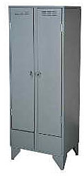 Каждая секция имеет запираемую дверь с вентилируемыми отверстиями, полку для головных уборов,перекладину для плечиков и прочей одежды, полку для обуви.