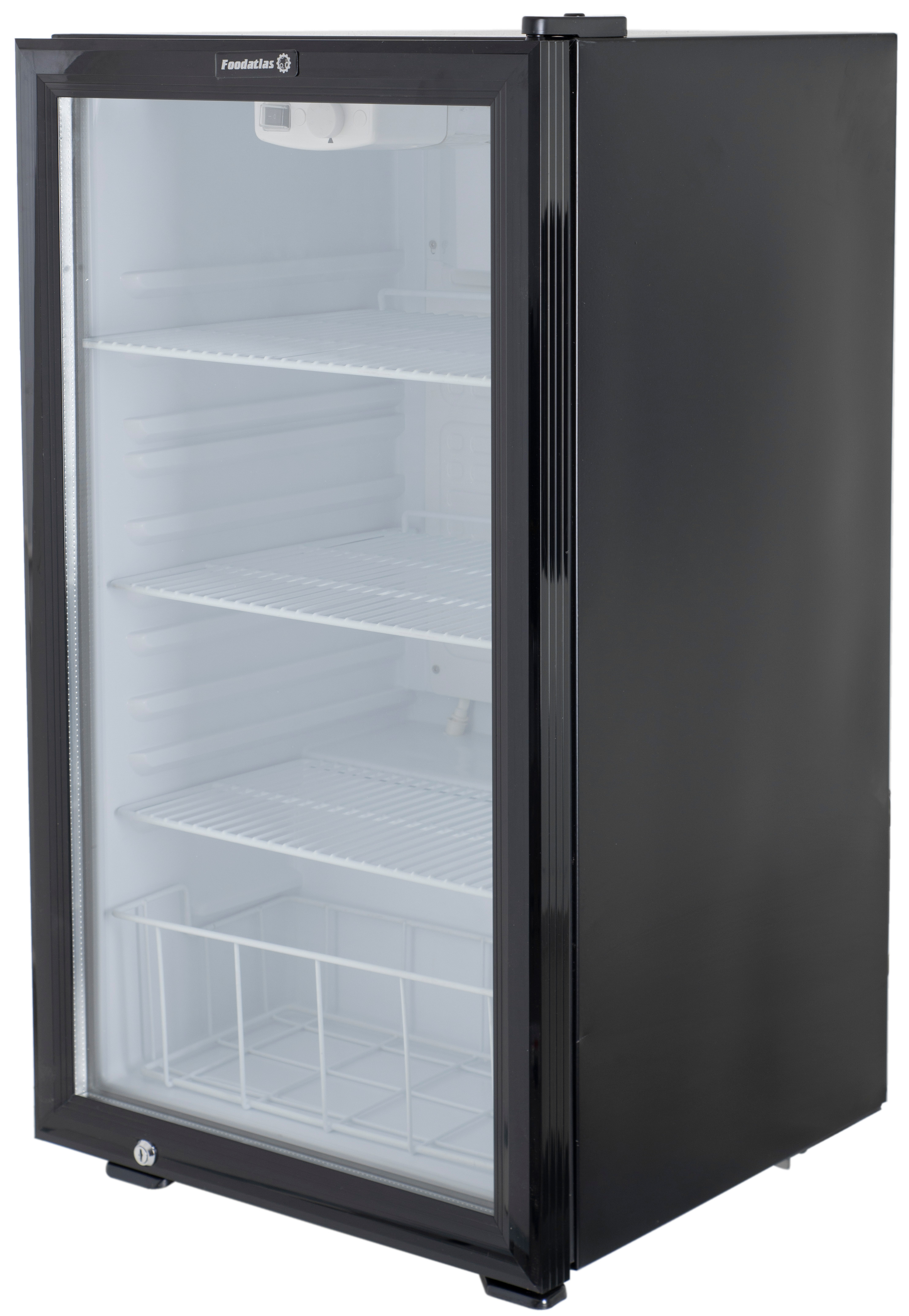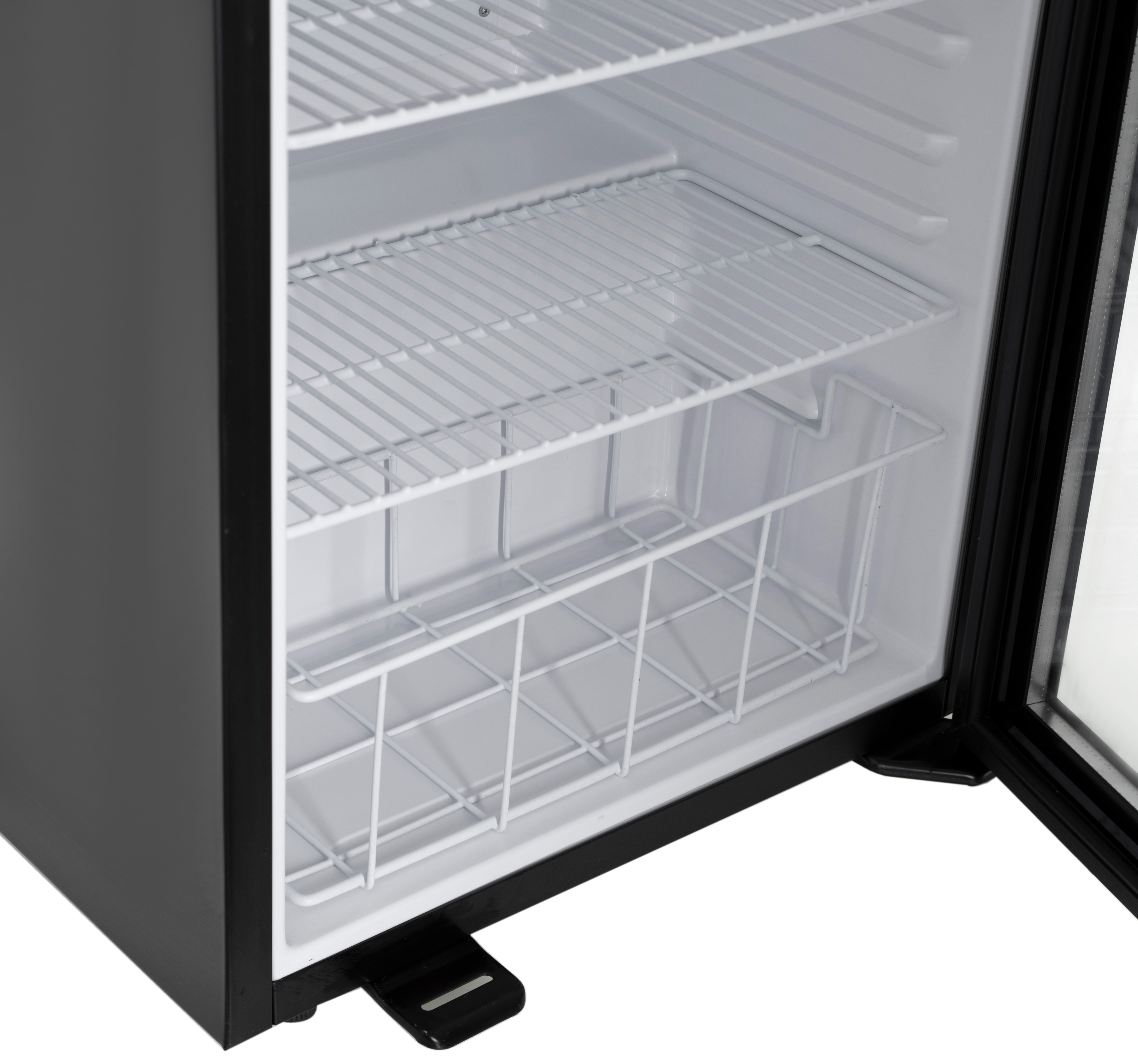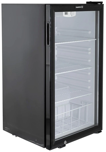 Прозрачная дверь из ударопрочного стекла и встроенная светодиодная подсветка позволяют легко видеть содержимое шкафа, обеспечивая быстрый доступ к нужным продуктам. Эргономичные ручки и простая система открывания делают эксплуатацию шкафа удобной и безопасной.
