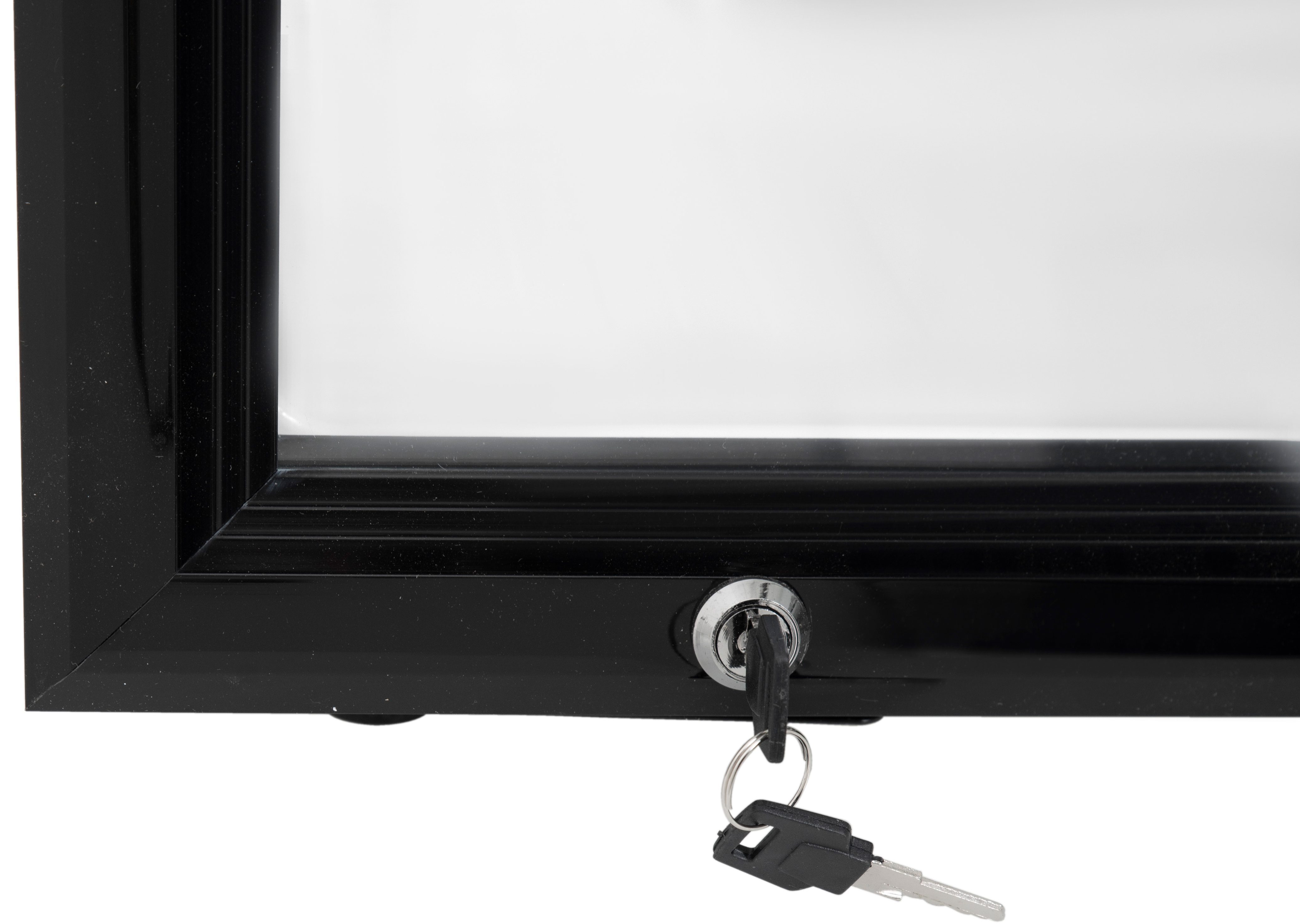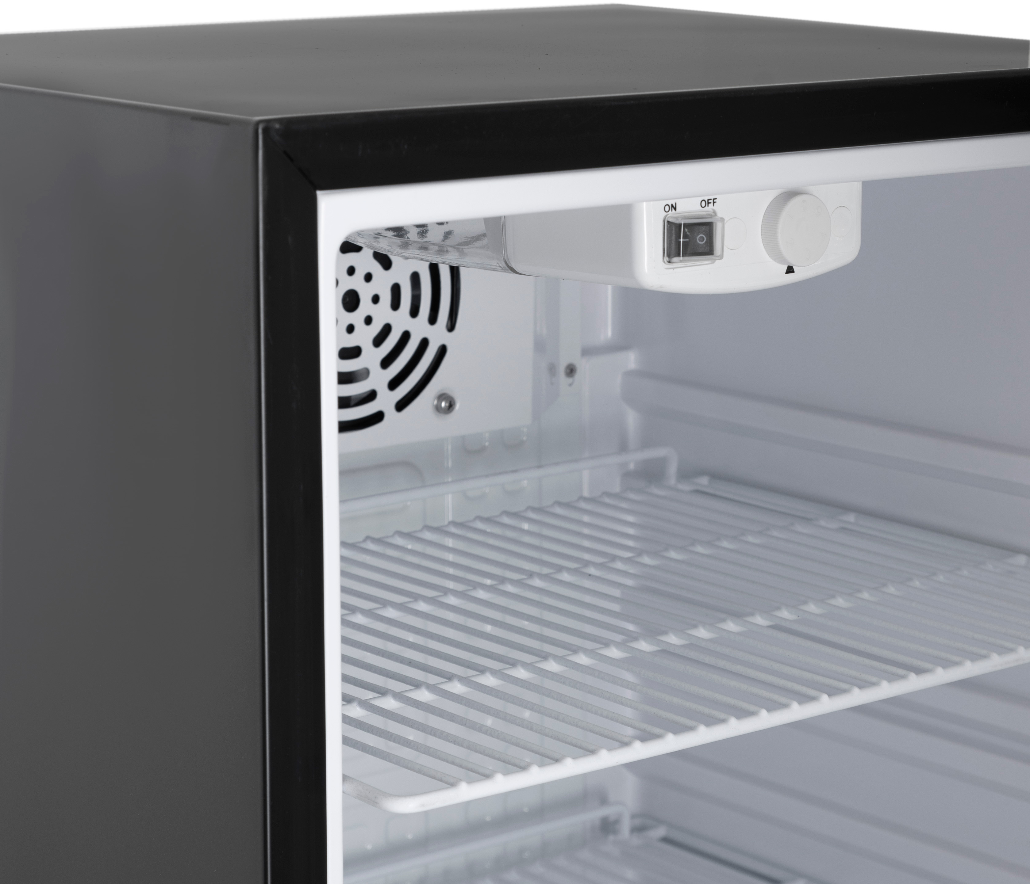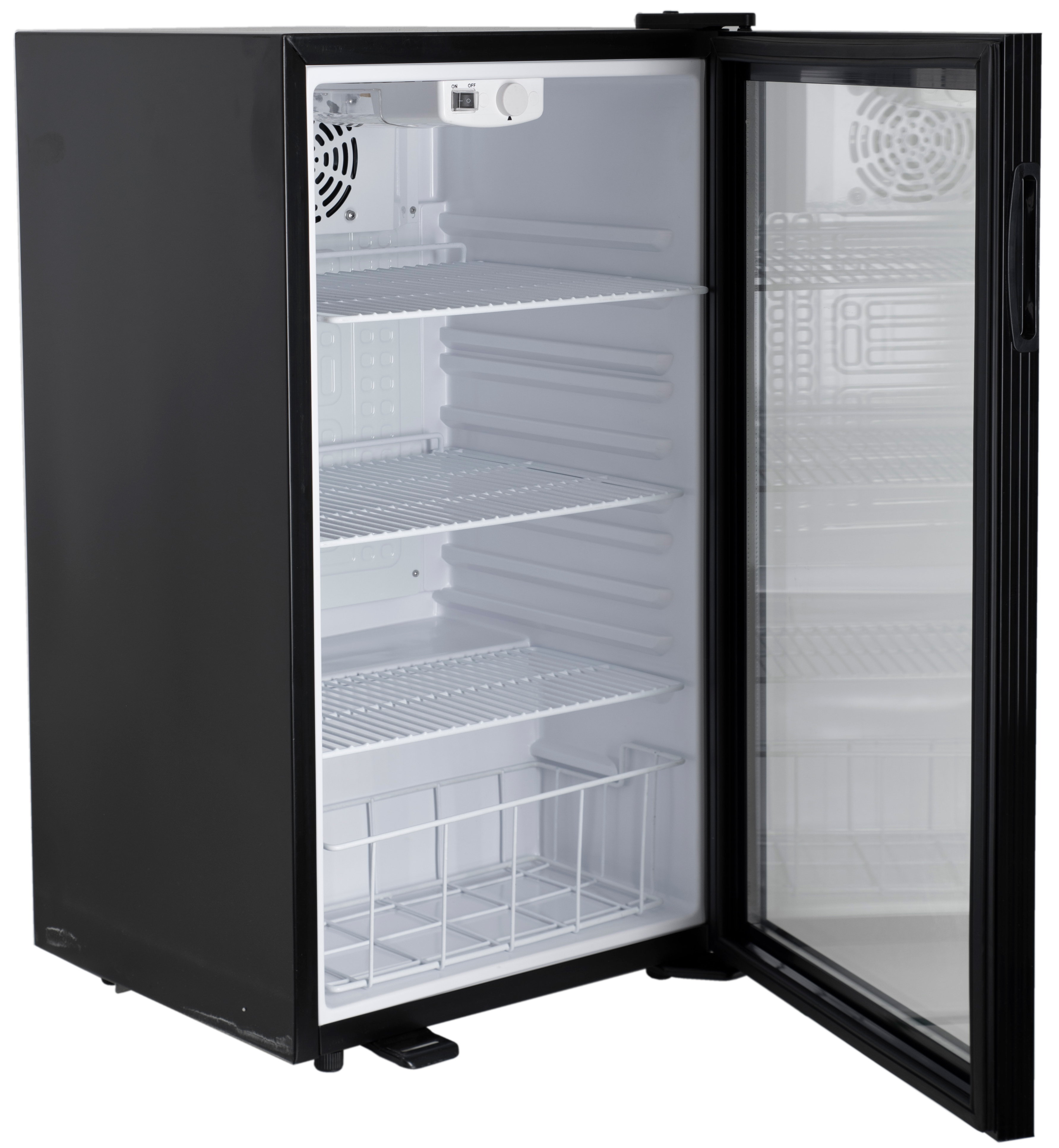 Прозрачная дверь из ударопрочного стекла и встроенная светодиодная подсветка позволяют легко видеть содержимое шкафа, обеспечивая быстрый доступ к нужным продуктам. Эргономичные ручки и простая система открывания делают эксплуатацию шкафа удобной и безопасной.