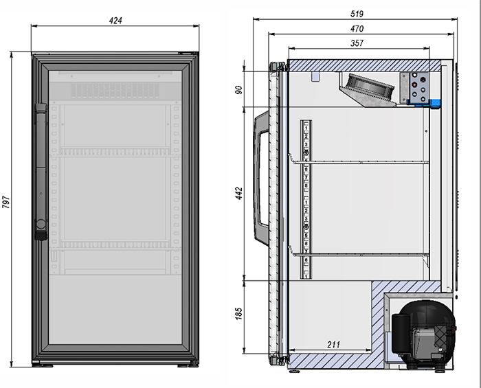 Шкаф холодильный барный Linnafrost RB09 для охлаждения бутилированных напитков с возможностью внутренней и наружной установки в магазинах, кафе, ресторанах, других предприятиях торговли.