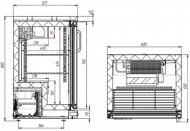 Стандартная поставка – со столешницей, дающей возможность использовать модель в качестве производственного стола с охлаждаемым презентационным объемом и в качестве пристенного модуля.