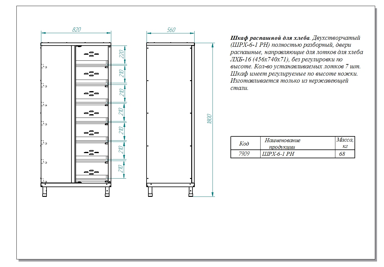 Технические характеристики шкафа кухонного для хлеба Abat ШРХ-6-1РН (210000007909)