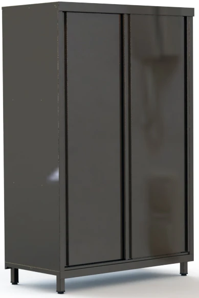 Оснащается объемными дверьми, сплошными полками из нерж. стали, дополнительно усиленными конструктивными элементами.