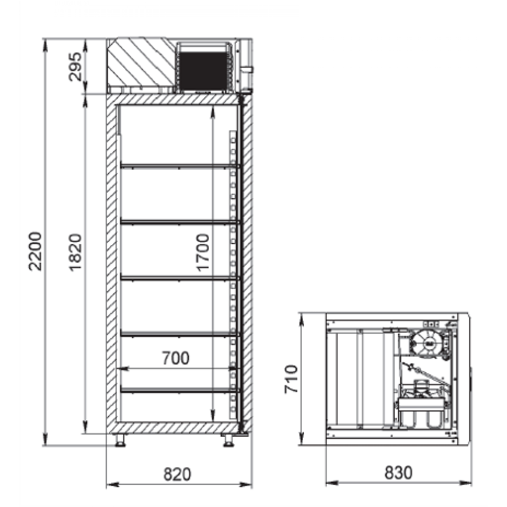 Тип оттайки морозильной камеры автоматический, при помощи ТЭНов, с системой испарения конденсата. Динамическая система обеспечивает равномерное охлаждение продуктов на всех 5-ти полках. Холодильный шкаф оснащен замком, подсветкой, в нем можно использовать гастроемкости GN 2/1. Предназначен для эксплуатации при температуре окружающей среды до +40°C и относительной влажности воздуха до 80%.