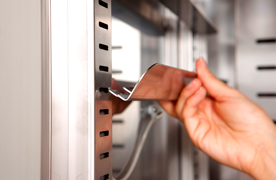 Шкаф имее моноблочную конструкцию с толщиной изоляции 70 мм из полиуретана высокой плотности и изготовлен полностью из нержавеющей стали AISI 304 18/10. Штампованное дно с округлыми углами для легкого ухода, равномерное распределение воздуха внутри камеры благодаря техническим особенностям парогенератора, контроль влажности с помощью сенсорной панели.