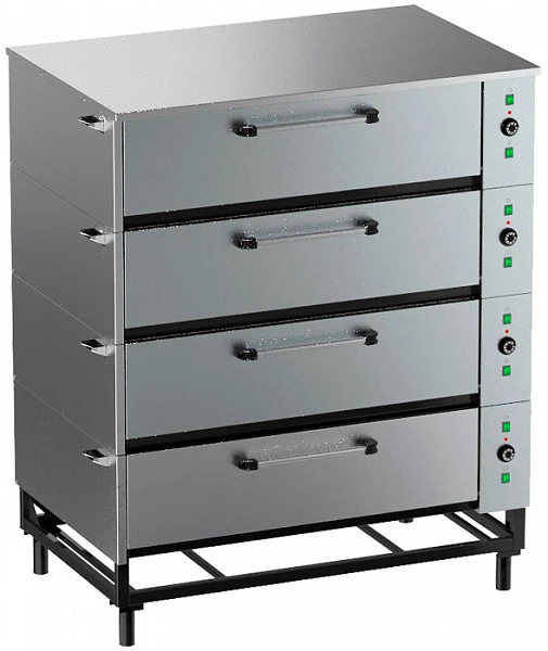Шкаф пекарский Тулаторгтехника ЭШП-4с(у) предназначен к эксплуатации на кухнях предприятий общественного питания для тепловой обработки продуктов в рабочих камерах шкафов при температуре от 50 до 3000С.