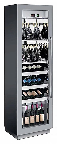 Светодиодная подсветка по всей высоте дверцы и сплошное стекло двери, создают эффект глубины и игры света, которые притягивают внимание к выставляемому вину.Благодаря светодиодной подсветке, стеклу с низкой теплопроводностью и изоляции толщиной 6 см расход электроэнергии снижен до 50% по сравнению с традиционными винными шкафами.