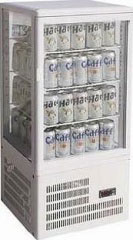 Прибор имеет три стеклянные стенки и стеклянную дверь, что также позволяет использовать его не только непосредственно в качестве холодильного шкафа, но и в качестве мини-витрины.