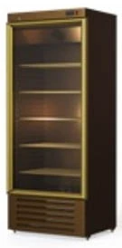 Приятный дизайн впишется в интерьер любого кафе или кондитерской, т.к. этот холодильный шкаф выполнен в золотисто-шоколадном цвете.