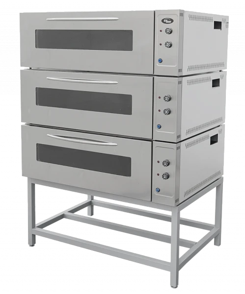 Шкаф был разработан с учетом требований федеральных сетей пекарен. 3 идентичные секции позволяют без существенных затрат проводить замену секций для профилактики и ремонта в условиях пекарен. Жарочно-пекарский шкаф выполнен из нержавеющей стали, для удобства эксплуатации каждая камера шкафа снабжена большим смотровым стеклом из закаленного стекла, подсветкой камеры, двумя терморегуляторами, регулирующими температуру в каждой секции в пределах от 50 до 320С, пароувлажнением.