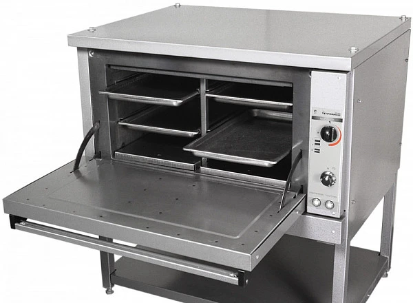 Шкаф жарочный Проммаш ШЖЭ-0,68Е используется на предприятиях общественного питания и торговли для жарки и тушения различных блюд, а также выпечки хлебобулочных изделий. Модель оборудована полкой для инвентаря.
