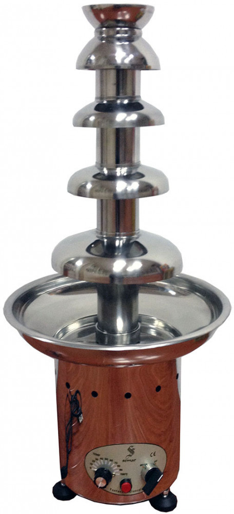 Вместительный пятиярусный фонтан для шоколада с подогревом Gastrorag CF30A подходит для приготовления фондю из фруктов и мелкой выпечки на праздничных мероприятиях.