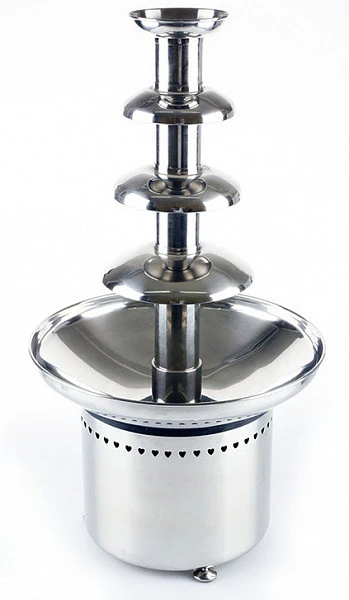 Принцип работы шоколадного фонтана заключается в непрерывной циркуляции горячего шоколада по каскадам.