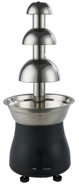 В самой нижней чаше находится специальный шоколад для фонтана. Шоколад нагревается до 60°С и становится горячим и густым.