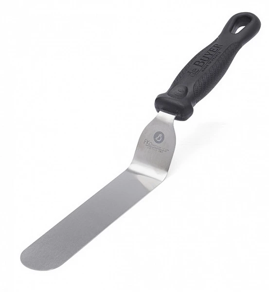 Шпатель кондитерский изогнутый De Buyer 4231.12 используется на предприятиях общественного питания и торговли, а также в домашних условиях для работы с продуктом на плоской поверхности.