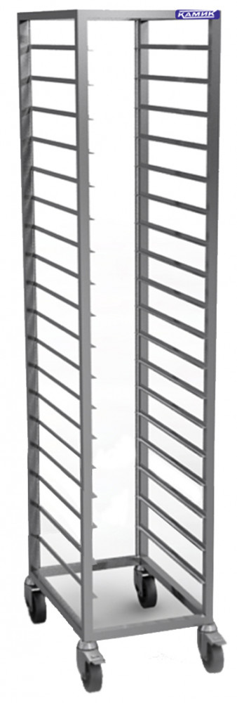 Стеллаж-шпилька Камик Шп-48111 на колесах предназначена для временного хранения и транспортировки до 8 гастроемкостей формата GN 1/1.