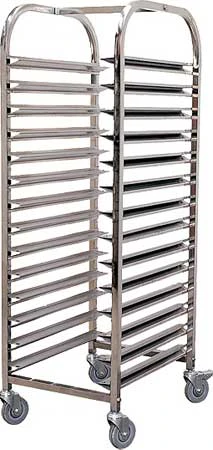 Тележка-шпилька Kocateq TR15A предназначена для хранения и перемещения гастроемкостей, минимизации занимаемой площади и оптимизации доступа к хранимым продуктам или материалам на кухнях предприятий общественного питания. Передвижной стеллаж состоит из многоярусных направляющих, укрепленных на стойках.