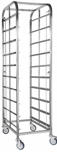 Тележка-шпилька для подносов Abat ТШГ-10 является вспомогательным оборудованием для предприятий общественного питания и используется для установки и транспортировки до 10 противней 430х550 мм.